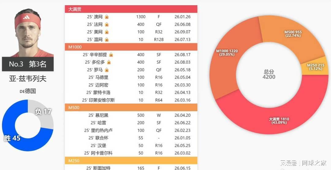 至此,兹维列夫继2020年获得美网亚军,2023年获得法网亚军后,又在今年摘下澳网亚军。凑成全满贯亚,目前只缺温网了。
