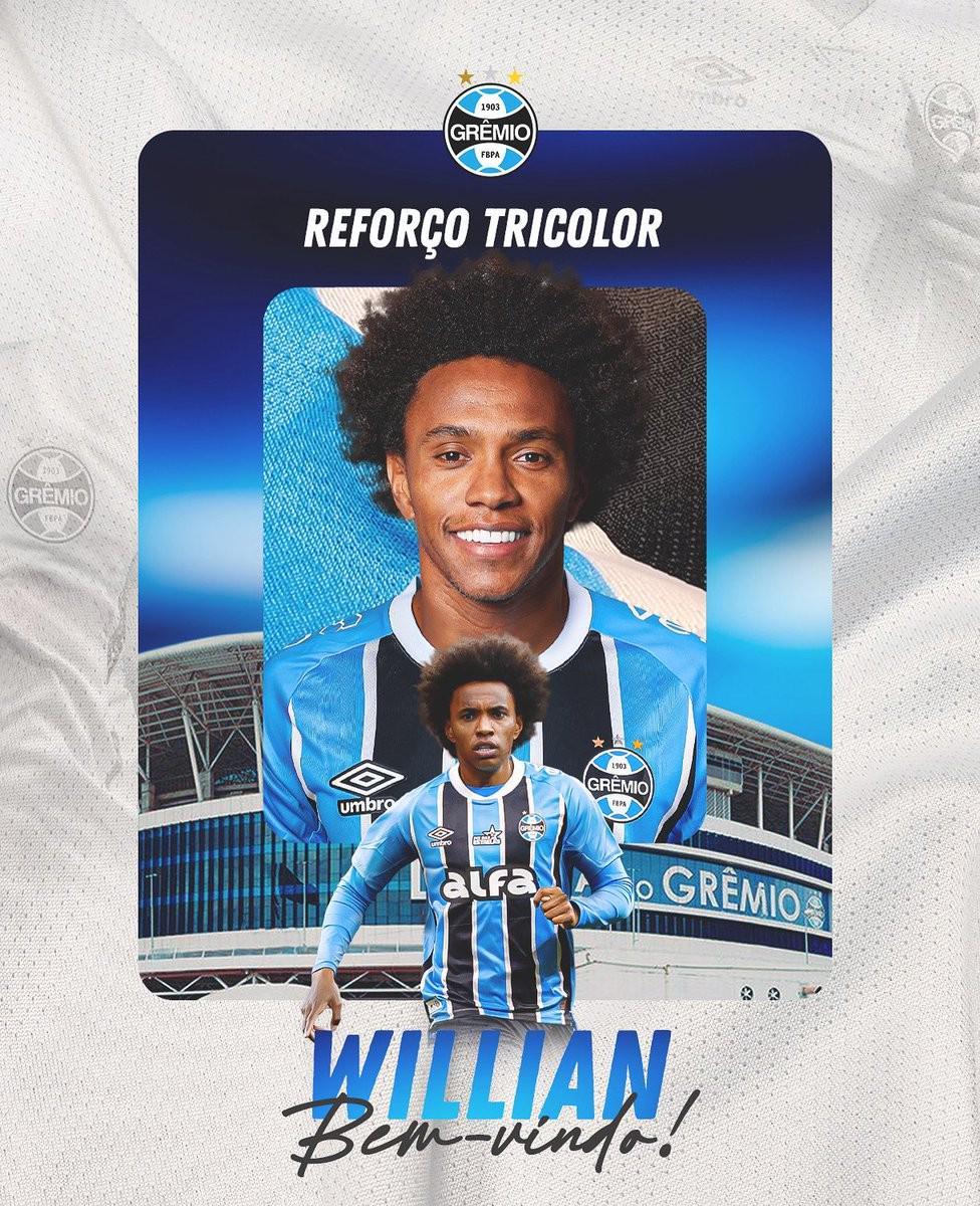 格雷米奥足球俱乐部向其球迷宣布,已与威廉达成协议,以加强球队实力。他已抵达阿雷格里港,完成了体检,并签署了合同,旨在参加2025年巴西锦标赛和2026赛季的比赛。